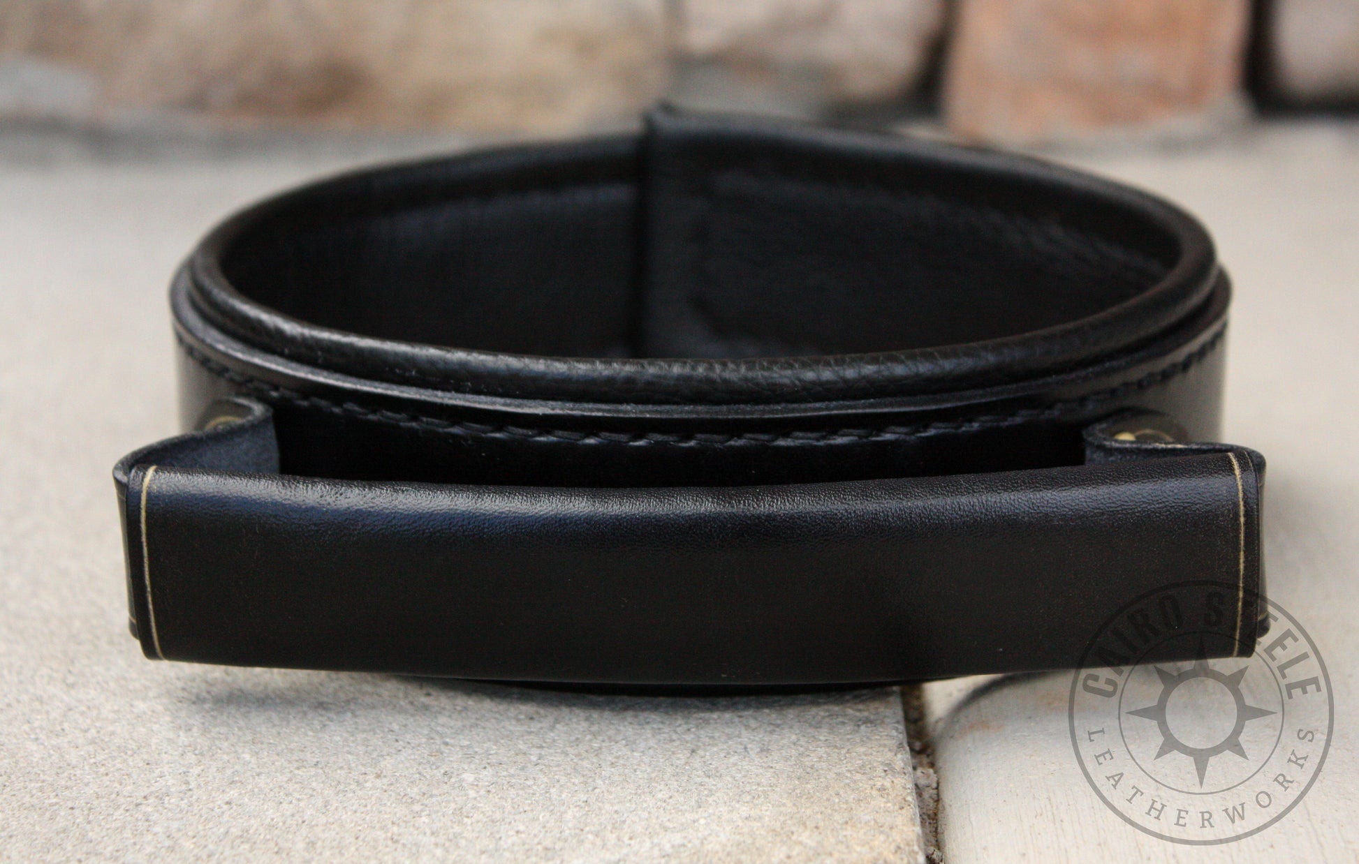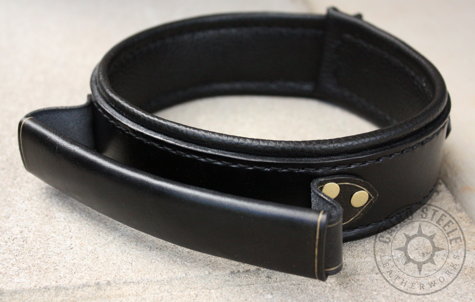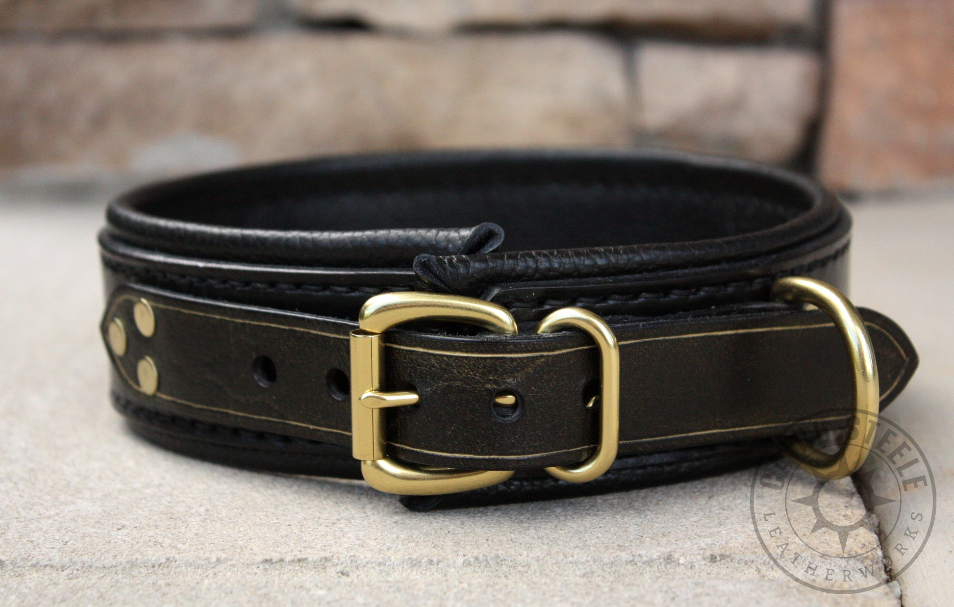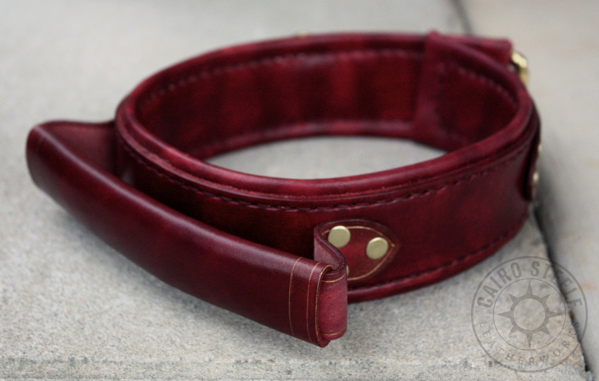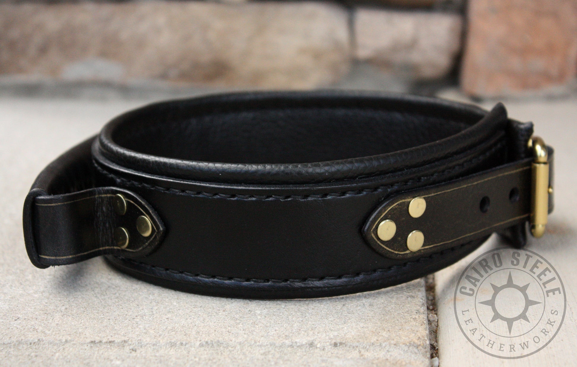 Interested in a leather collar made just for you? These collars are completely made to order, with a variety of leather dyes, thread colors, and hardware options. Each collar is made entirely by hand.